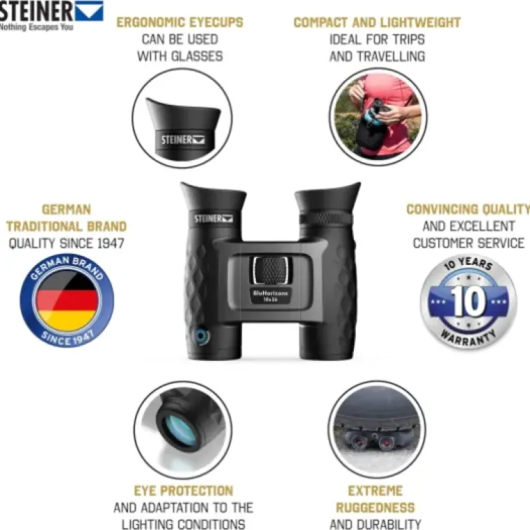 Au final, les Steiner BluHorizons 10x26 sont des jumelles compactes très orientées "plein jour" et "plein air". Elles sont légères, faciles à trimballer, et la techno Autobright fait vraiment la différence quand on passe du paysage normal aux zones très lumineuses (eau, neige, sable). L’image est nette et propre pour ce format, la prise en main est rassurante, et la construction donne l’impression de pouvoir encaisser des années de rando et de voyages sans broncher.